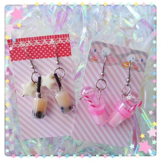 Candy Syrup Kawaii Earrings - Milk Boba Tea and Pink Sherbet Sparkle!